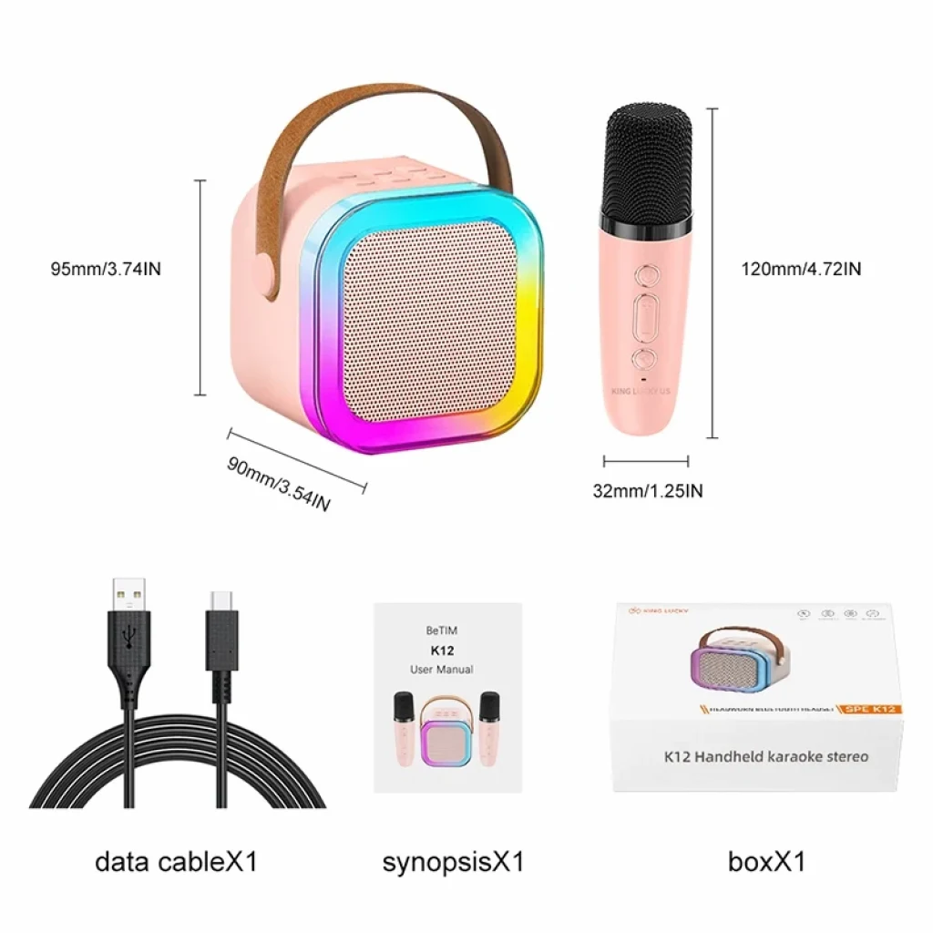 Mini Taşınabilir Rgb Karaoke Tek Mikrofonlu Bluetooth Kablosuz Hoparlör Radyo K12